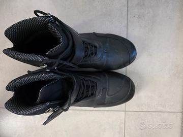 Scarpa moto, da uomo. Mid-cut, 4 stagioni. Realizzata in materiale tecnico per utilizzo urban e touring con protezioni extra alla caviglia. Tomaia in materiale tecnico ad alta resistenza. Linguetta e zona caviglia foderate in tessuto traspirante per favorire il comfort. Chiusura con lacci e velcro per una calzata sicura e personalizzabile. Extra protezioni su malleoli. Rinforzi interni su punta e tallone. Rinforzi strategici in zona cambio/punta. Fodera interna in tessuto traspirante. Logo AXO e dettagli riflettenti per una visibilità ottimale in ogni condizioni. Suola in gomma ad alta aderenza, disegnata per offrire grip su ogni superficie.