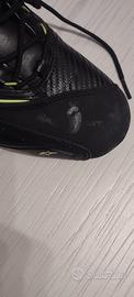 Unici aspetti rilevanti alcune macchine sulla punta scarpa destra (probabilmente con una bella spazzolata vanno via) ed incollaggio punta sempre della destra (indossate non si nota la riparazione).