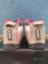 Scarpe moto donna estive N.41 sidi Mod SDS Gas Flow grigio/rosa in buone condizioni. Ho scatola e stringhe originale(bianche),lascio naturalmente anche quelle in foto di stringhe. Ancora tutte da sfruttare,molto comode anche in passeggiata,entra molta aria in viaggio.