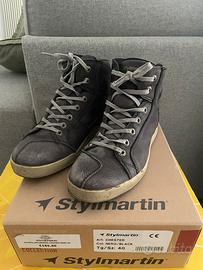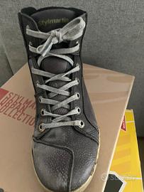 Vendo scarpa da moto stylmartin, numero 40, modello chester, in pelle pieno fiore, traspiranti e impermeabili, con protezioni sulle punte, malleolo, tallone, ideali per utilizzo giornaliero, molto comode, anche per camminare. Usate per due stagioni, con dei piccoli segni di usura sulla scsrpa sinistra, caudati dalla leva del cambio.