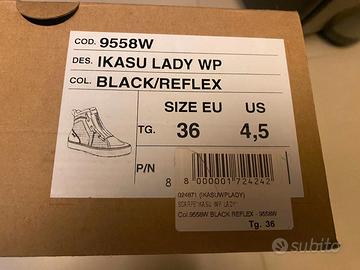 Vendesi scarpe moto donna/ragazza TCX IKASU LADY WP black/reflex, completa di scatola, usate pochissimo in quanto erano di mia figlia a cui è cresciuto il piede.