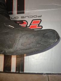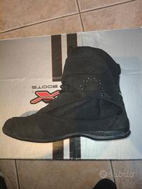 Vendo scarpe moto tecniche TCX X-Cube Waterproof originali con suola Michelin ad alta aderenza e protezioni certificate su malleoli, punta e tallone. La calzatura è strutturalmente perfetta, impermeabile e molto comoda per l'uso quotidiano, ma presenta evidenti segni di usura estetica e materiale scrostato sulla parte anteriore e sui lati come mostrato chiaramente nelle foto.