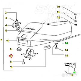 (R.3336) Vendo scatola serratura sella nuova per Piaggio Vespa PK XL - Rush - Plurimatic 50 cc dal 1985 con telai VA52T - V5X3T - V5X4T e codice Piaggio 227129 , il prezzo si intende per singolo pezzo