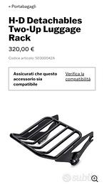 Vendo porta pacchi a sgancio rapido e Sissy Bar originali HARLEY - DAVIDSON colore nero lucido