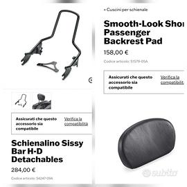 Il Sissy Bar, Sissybar, schienale, schienalino, poggia schiena, poggiaschiena, spalliera ed ilporta pacchi, portapacchi, portabagagli, porta bagagli sono articoli originali harley Davidson