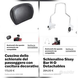 Vendo Sissy Bar a sgancio rapido originale Harley-Davidson in condizioni perfette compatibile con tutta gamma Touring dal 1994 al 2008 compreso Prezzo di listino 450 euro Vendo a 200 Monta su Road King, Road Glide, Tour Glide, Electra Glide, Street Glide, Ultra Classic, cvo, special, custom, limited etc etc Per qualsiasi info sono a disposizione Il sissy Bar, Sissybar, schienale, schienalino, poggia schiena, poggiaschiena, spalliera, sissi bar, sissibar è un articolo originale harley davidson