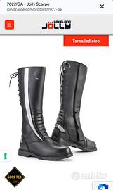 prezzo ribassato oggi sabato 28 marzo TAGLYA 40 sono il modello Jolly 7027/G (noto anche come 7027/GA Patrol Boot), un calzare professionale di alta gamma progettato per operatori di pubblica sicurezza, in particolare per i motociclisti della Polizia Locale, Stradale o dei Carabinieri. Descrizione e Caratteristiche Tecniche Questi stivali sono certificati come Dispositivi di Protezione Individuale (DPI) per motociclisti e rispondono alle normative EN ISO 20347 e EN 13634. • Materiali: Realizzati in pelle bovina pieno fiore idrorepellente di alta qualità, con uno spessore di 1.8 - 2.0 mm. • Fodera GORE-TEX: Dotati di membrana interna GORE-TEX Performance Comfort, che garantisce totale impermeabilità e un'altissima traspirabilità (fino al 700% in più rispetto ai requisiti minimi di legge). • Suola Tecnica: In gomma antistatica, antiolio e resistente agli idrocarburi. È progettata per resistere al calore per contatto fino a 300 °C (HRO) e offre un'ottima aderenza su superfici urbane (SRC). • Protezioni: Includono inserti para-malleolo per assorbire gli impatti e un rinforzo "paraleva" sulla punta per evitare l'usura causata dal cambio della marcia in moto. • Chiusura: Presentano un sistema di allacciatura posteriore con velcro che permette una calzata rapida e personalizzata.