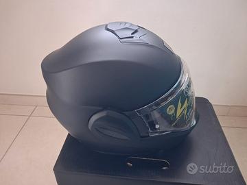Casco nuovo come da negozio con scatola e corredo completo,con sacca e visiera come da foto,colore Matt Black Silver Taglia XXXL 64 -65 CM EXO-TECH EVO PRO è il nuovo casco modulare di Scorpion dallo stile distintivo e adatto ad alte prestazioni. La calotta esterna, a basso volume, è realizzata in fibra TCT Ultra ed è quindi resistente e allo stesso tempo super leggera. Il meccanismo della mentoniera (apribile a 180°) è semplice da usare rendendo il casco estremamente pratico in ogni occasione. Inoltre, il casco presenta una presa d'aria superiore che garantisce un'alta ventilazione e interni interamente estraibili, lavabili morbidi e traspiranti per un eccellente comfort. CARATTERISTICHE TECNICHE: - Calotta esterna in Fibra TCT Ultra (Thermodynamic Composite Technology) - Doppia omologazione P/J - Chiusura del sottogola con fibbia micrometrica - Apertura della mentoniera a 180° Flip-Back - Visiera (KDF-18) Trasparente con predisposizione Pinlock - Visiera interna solare retraibile UV400 e con trattamento antiappannamento EverClear - Sistema Ellip-Tec per un cambio rapido della visiera - 2 aerazioni indicizzate regolabili indipendentemente - Tessuto Kwikwick3® assorbente, traspirante morbido al tatto e ipoallergenico - Interno completamente estraibile e lavabile - KwikFit: Cuscinetti interni che consentono l'inserimento facilitato delle asticelle degli occhiali più comuni - Predisposto per l'installazione di un sistema di comunicazione Bluetooth aftermarket - Paranaso removibile