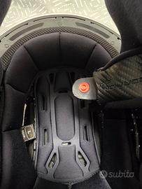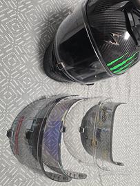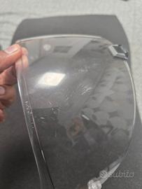 Il casco è usato ma in buone condizioni generali. Viene fornito con un totale di 5 visiere. 2 visiere originali (trasparente e fumé nera). Entrambe le visiere originali sono in perfette condizioni. 3 visiere aftermarket (fotocromatica, argento e oro rosso). Quella argento è nuova. Quella oro rosso presenta piccoli graffi visibili in foto, mentre quella fotocromatica ha graffi più evidenti. Può essere utilizzata o buttata via a seconda delle preferenze. In breve, 3 visiere sono in perfette condizioni, una presenta un piccolo graffio nella parte superiore che non compromette la visibilità e l'ultima ha graffi più evidenti. È incluso anche il Pinlock. L'interfono, visibile in foto, non è incluso. Se desiderato, avrà un costo aggiuntivo.
