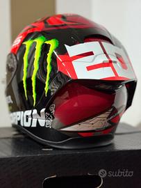 Casco Scorpion replica Fabio Quartararo completo di imballaggio originale e relativo manuale d'uso. Taglia S . Mai utilizzato (pellicole originali ancora applicate sulla visiera) poichè misura errata per le mie esigenze. Sistema AirFit (gonfiaggio dei guanciali per una migliore aderenza al viso e ridurre il livello di rumore). Include una visiera scura di ricambio, sacca porta casco imbottita, visiera a strappo Pinlock.