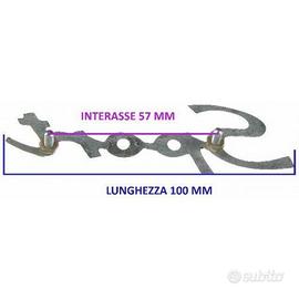 (R.5684) Vendo fregio stemma nuovo per auto Fiat Sport originale epoca in metallo cromato con interasse fori di fissaggio 57 mm e lunghezza 100 mm con leggeri segni di magazzinaggio , per misure vedere foto