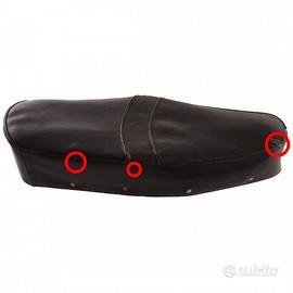 (R.21406) Vendo sedile biposto usato per motocicli vintage conlunghezza 590 mm e larghezza nel mezzo 220 mm con piccoli tagli come da foto , non conosciamo modello veicolo , per misure vedere foto