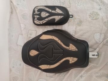 Vendo sella e sellino posteriore per Yamaha Dragstar 600 Classic. Non so se monta anche su modello custom o anche 1100....da provare. Come si vede è perfetta senza nessuna abrasione. Unico neo la colorazione degli inserti della sella leggermente ingialliti per l'uso in quanto il sellino posteriore non è mai stato montato. Marca Granucci. Solo consegna a mano. Grazie