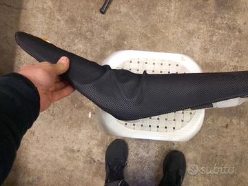 come da foto , vendo sella ribassata, rifoderata a nuovo con coprisella blackbird. insieme alla sella consegno anche coprisella originale con fibia