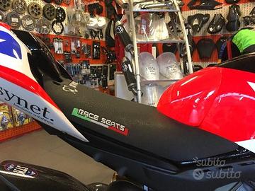 Sella adatta per Ducati Panigale V4 tutte le versioni in materiale embossed, utilizzato nel motomondiale con ricami M.MOTOCORSA e RACE SEATS.