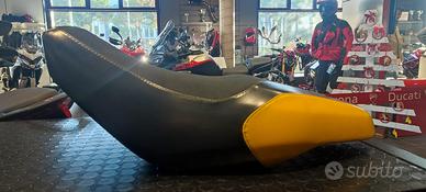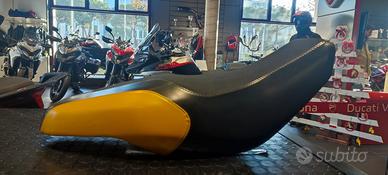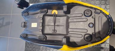 Sella originale Full Throttle 2015 usata in pelle nera/ gialla e tessuto con cuciture gialle e nere.