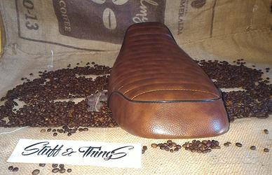 Vendo sella con base curva in ecopelle nera o marrone ottima per trasformazioni cafe racer, scrambler, special, vintage e retrò.