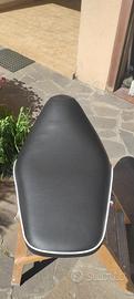 sella lunga con il suo supporto per portare oltre al passeggero il bauletto. la sella è per lo scarabeo 50 a 2 tempi. sono disponibili anche le pedaline.