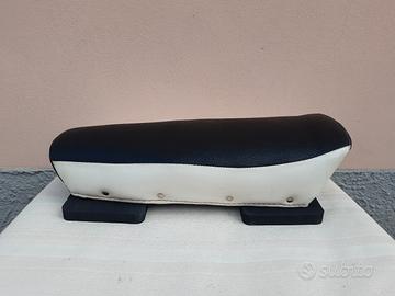 Vendo sella per moto epoca anni 50-60. Bicolore nero goffrato con fascie laterali bianche. Lunghezza 50 cm, larghezza 20 cm. Interasse della staffa di fissaggio 80 mm e diametro dei fori 12,5 mm. Pomolo apertura/chiusura zigrinato e cromato. Condizioni perfette. Per altre informazioni o foto 3389943868.