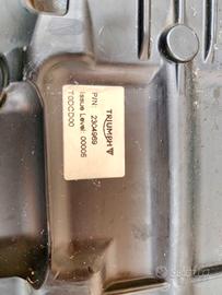 Sella biposto originale Triumph Street Scrambler 900 – completa – cod. 2304969 + 2305745 – 50 € Vendo sella biposto originale Triumph per Street Scrambler 900, composta da slla pilota e sella passeggero, entrambe originali. Sulle etichette visibili in foto risultano i seguenti riferimenti: P/N 2304969 per la sella principale e P/N 2305745 per la sella passeggero. La sella si presenta in buone condizioni generali, con qualche piccolissima imperfezione dovuta al normale utilizzo, visibile in foto ma senza particolari problemi estetici rilevanti. Il rivestimento appare complessivamente ben conservato e le foto mostrano chiaramente sia la parte superiore sia la parte inferiore dei due elementi. Per correttezza e trasparenza, segnalo che l’anello di blocco della sella del passeggero è leggermente lesionato; il difetto è ben visibile nelle foto e risulta facilmente riparabile. Proprio per questo motivo ho impostato un prezzo interessante. Vendita vista e piaciuta con formula tra privati. Disponibile per ritiro a mano oppure spedizione da concordare. Se necessario, posso inviare ulteriori foto di dettaglio.