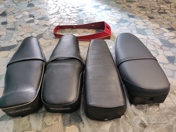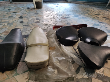 Vendo sella nuova modello lungo vespa Pk (90?), sella nuova per sfera-quartz colore grigio, rosso, nero, sellino passeggero Aprilia red rose nuovo, sella corta nuova per Piaggio Zip, sella usata Leonardo 150 colore grigio. Sella Piaggio mp3 con sensore rotto. Sella per gilera CBA. Coprisella per vespa 50 e vespa 150. Sella usata per suzuki burgman 200. Sella usata vespa special. Gonnellino rosso per vespa Pk. Prezzo a partire da 50€.Spese Spedizione a carico dell'acquirente.