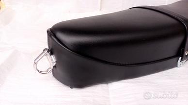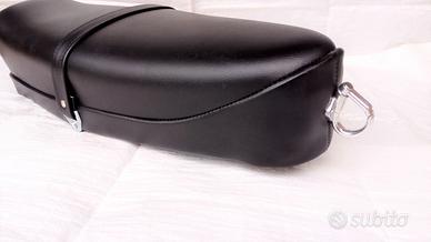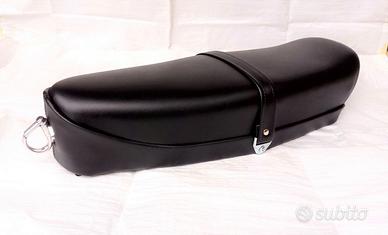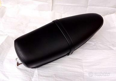 Sella lunga biposto completa, nuova e imballata, modello originale colore nero con gancio portacasco / portaborse