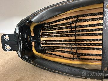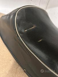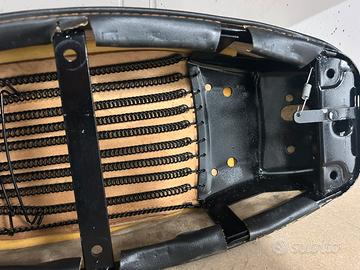 Vendo sella piaggio vespa 50 special, telaio riverniciato e utilizzato per unmpaio di mesi, foderina originale con i suoi segni e diffetti degli anni (vedi foto), è stato rifatto il cuoio e l’imbottitura interna della seduta e del gobbino.