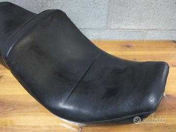 Sella pilota e passeggero per moto custom, in buone condizioni. Larghezza pilota 36 cm, lunghezza pilota 52 cm, larghezza passeggero 26 cm, altezza passeggero 22 cm.