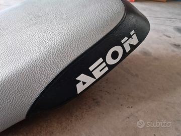La sella del quad Aeon 180 RS è progettata per offrire comfort e praticità durante la guida su diversi tipi di terreno. Caratterizzata da un'imbottitura ergonomica, la sella garantisce un supporto adeguato per il pilota, riducendo l'affaticamento anche durante le uscite più lunghe. Il rivestimento antiscivolo assicura una buona aderenza, migliorando la sicurezza e il controllo del mezzo, specialmente in condizioni di guida impegnative. Inoltre, la sella è abbastanza spaziosa da permettere un certo grado di movimento, utile per adattarsi rapidamente alle diverse posizioni richieste da terreni accidentati o curve strette.