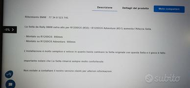 Sella Rally alta per GS1200 (K50-K51) NUOVA mai usata. Codice BMW 77348523745 Nelle foto tutte le specifiche