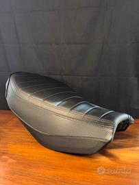 Sella originale Ducati Performance con profilo rialzato +15 mm rispetto alla seduta OEM MY19. Rivestimento nero a grana fine con cuciture orizzontali termosaldate, logo DUCATI posteriore serigrafato. Imbottitura a densità maggiorata per miglior supporto su lunghe percorrenze; scocca in tecnopolimero con attacchi originali integri. Compatibile con la famiglia Scrambler 800 MY19→ con base sella standard (Icon/derivate; escludere i modelli con sella dedicata tipo Café Racer/Desert Sled se non previsto dal proprio manuale).