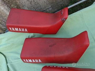 Vendo come da foto selle USATE differenti condizioni (copertina originale Yamaha nuova – sella conservata originale in buone condizioni, selle usata con difetti) per XT 600Z – Yamaha Tenere 1VJ -3AJ (moto anni da 1986 – 90 ricambi nuovi e usati di 36 -40 anni circa). Sella colore rosso per XT 600 Tenere 1VJ – 3AJ 1)Copertina sella NUOVA ORIGINALE Yamaha TERMOSALDATA + sella. DA ASSEMBLARE. € 180 Solo copertina € 160. Solo sella senza copertina € 40 2)Sella USATA IN BUONE CONDIZIONI ORIGINALE Yamaha TERMOSALDATA La copertina è ben conservata. € 150 3)Sella USATA ORIGINALE TERMOSALDATA ma DETERIORATA/SBIADITA/MACCHIATA sulla seduta (si può utilizzare cosi o fare un intervento di ripristino colore da chi fa restauro pellami). € 70 4)Sella usata originale termosaldata ma ROVINATA/TAGLIATA nella parte anteriore (volendo si può utilizzare cosi mettendo un adesivo, la seduta è in buone condizioni). € 50 1)Copertina sella NUOVA ORIGINALE TERMOSALDATA + sella, da assemblare € 180 2)Sella USATA IN BUONE CONDIZIONI ORIGINALE TERMOSALDATA € 150 3)Sella USATA ORIGINALE TERMOSALDATA ma macchiata sulla seduta € 70 4)Sella USATA ORIGINALE TERMOSALDATA ma copertura ROVINATA 50 Le selle per Tenere 1VJ-3AJ sono uguali, è sufficiente sostituire gli attacchi sottostanti. SPEDIZIONE ESCLUSA Luogo: provincia Parma/Piacenza/Cremona (per eventuale consegna diretta, che sarebbe preferibile cosi tra appassionati di moto si possono valutare direttamente). ATTENZIONE, NON è possibile spedire tramite il servizio SUBITO.IT perché la sella è lungo circa 70 cm (e da aggiungere imballo) e la spedizione massima consentita con SUBITO.IT è solo 60 cm). Valuto eventuali scambi con materiale per: Yamaha 4GV TTE/TTS: mascherina porta faro bianca SOLO NUOVA. Ricambi del motore per 34L – XT 550 – XT 600 2KF -1VJ – 3AJ: ingranaggi cambio 3-4-5, spinotti di biella, bielle, pompa olio ecc., ma solamente se nuovi.