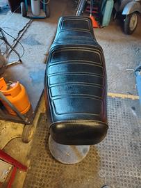 vendo sella yankee per vespa et3 125 ma adattabile su altri modelli. sella complessivamente in ordine se non per un unico difetto vicino l'inserimento della chiave, come da foto, assieme do le chiavi e il perno per la chiusura. possibilità di spedizione.