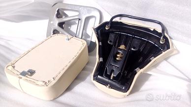 i sedili sono foderati in pelle bianca sul panna , la struttura della sella anteriore è in ferro con molle, il sellino posteriore ha invece la base in legno