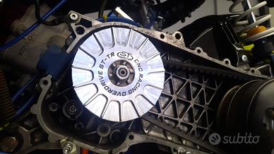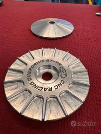 Puleggia fissa per variatore 2 tempi Gilera Runner 125/180 con sistema OVERDRIVE che permette di sfruttare al meglio il lavoro della cinghia garantendo una migliore accelerazione un miglior scatto ed un incremento della velocità, si monta senza rasamenti e necessita la rimozione dell’avviamento elettrico.
