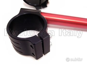 COPPIA di SEMIMANUBRI con BRACCIALI CHIUSI. Sono in lega d'alluminio ricavati dal pieno e prodotti con macchine a controllo numerico CNC. L'inclinazione 6 gradi. I colori disponibili di tubi e bracciali sono: arancione, blu, nero, oro, rosso, silver, titanio e verde. Il diametro dei bracciali di mm: 32 - 33 - 35 - 36 - 37 - 38 39 - 41 - 43 - 45 - 46 - 48 50 - 51 - 52 - 53 - 54 - 55 Compatibili con: rsv4 tuono falco sl 1000 caponord rst 1000 futura shiver dorsoduro rx125 rs125 rs250 pegaso srv850 r160 tnt 899 1130 Tornado r1200 gs k1200 k1300 k1600 s1000rr f800 f650 hp2 xb9 xb12 x1 s1 lightning m1 m2 cyclone 1125 raptor 125 650 1000 monster 400 m400 600 m600 620 m620 620ss 695 696 748 749 750m 750 m750ie 750ss 796 800 800ss 900 900ss 916 996 998 999 m1000 1000ss m1100 s2r s4 s4r st st2 st3 st4 sport 1000 supersport gt paul smart le 848 899 959 1098 1198 1199 1299 panigale multistrada diavel carbon hypermotard 796 821 1100 streetfighter hornet 600 900 cbr600 f2 f3 f4 600 rr deauville cb cb750 sevenfifty vfr vfr750 vfr800 vfr1200 900 929 954 1000f cb1000r cbr 1000rr vtr vtr1000f firestorm vtr1000 sp1 sp2 rc51 xl1000 rvt1000 1100xx x11 nc700 cbr250 cbf cbf600 integra cbf1000 crossrunner crosstourer 1200 zx ninja250 300 400 636 zxr400 gpz500 er6 versys zx6 zx636 zx7 zx9 zx10 zr750 zephyr z750 z800 z1000 h2 z rc8 1190 690 rc 125 200 390 duke 990 superduke griso nevada breva v7 v10 v11 norge bellagio stelvio california corsaro granpasso 910 920 990 1078 1090 veloce brutale rr rivale f3 675 800 ago rc amg f4 rgv 250 gsr gsxr bandit gsx650f gsx1250 gsx1300 gsz1400 dl tl dl1000 tl1000 vstorm sv sv650 sv1000 sfv650 gladius hayabusa nuda smr speed street triple 955 1050 speed four 675 tt600 daytona speedmaster bonneville thruxton scrambler tiger sprint rocket xsr xt660 tt r1 r6 fzs 600 r1m fazer fz1 fz8 fz7 fz6 xj6 mt01 mt07 mt09 mt10 vmax hornet600 hornet900 cbr600 cbr900 cbr1000 cb1000 cbr929 cbr954