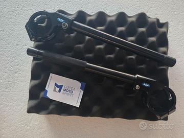 Semimanubri Robby Moto Engineering in alluminio anodizzato nero (Collare 50mm erano montati su GSXRK modello 5, 6 e 7). Caratteristiche: Materiale: Alluminio Inclinazione: 5 gradi Diametro dei collari: 50 mm Offset: Offset 10 mm Altezza collare: 30 mm Diametro del tubo: 22 mm CONTATTO TELEFONICO 081 819 39 38 LUCCA MOTOSPORT VILLARICCA LATO QUALIANO 335 60 21 619 - 081819 34 52 - 081 819 39 38 WWW.LUCCAMOTOSPORT.IT Lunghezza del tubo: 287 mm Peso del kit: 648 g. Colore anodizzazione: Nero