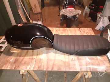 Serbatoio 19 lt artigianale Tottimotori, completo di sella, per Triumph Bonneville a carburatori. Montaggio senza modifiche, non fornisco il tappo (si riutilizza l'originale).