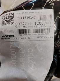 Serbatoio ACERBIS 11 litri per HONDA CRF450 dal 2021 al 2023. NUOVO. BARCODE 22000927