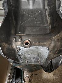 vendo serbatoio ducati monster, riparato con acciaio liquido, attualmente non ha perdite di benzina, smontato un paio di settimane fa. È DA RESTAURARE.