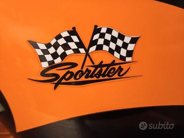 Verniciatura personalizzata black and orange fatta con gusto, classica fascia che strizza l'occhio agli anni 50 e decals piccole racing, abbinamento davvero ben riuscito.