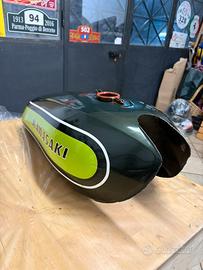 Vendo serbagoio kawasaki mach III, vernice originale. Come si vede qualche leggere segno di usura. Tratto con tancherite. Nella prima immagine in basso é un riflesso non é segnato.