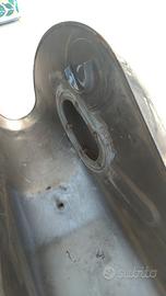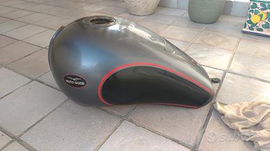 Serbatoio Moto Guzzi California EV, del 2004, con pompa interna. Il serbatoio presenta ruggine all'interno (obbligatorio il trattamento con tankerite) e un buco lungo la saldatura di fabbrica laterale. Esternamente è in buono stato, senza ammaccature. Pompa e tappo non presenti.