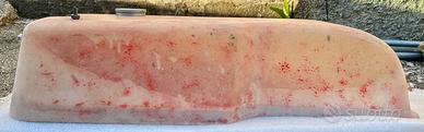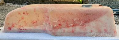 Serbatoio benzina in vetroresina per Benelli 500 e Benelli 500 GP, ma utilizzabile anche per trasformazioni su altre moto. Per il montaggio occorre l'utilizzo di tamponi in gomma per assorbire le vibrazioni e proteggere il telaio da urti e graffi. Sono presenti due filetti resinati, sia all'anteriore che al posteriore, dove vanno avvitati i nottolini per poter agganciare i tiranti elastici di fissaggio. • capacità 13 litri • lunghezza totale 62.5cm • completo di tappo e sfiato • due raccordi rubinetto con filetto M12x1.5 • due rubinetti con filetto M12x1.5 • quattro nottolini, due all’anteriore e due al posteriore, per fissaggio con elastici