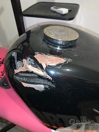 Il serbatoio come da foto è ammaccato a seguito di una caduta . Ma comunque intatto nella struttura.. solo consegna a mano