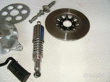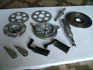 Serie J - K - L - M- N - A - B. Ricambi praticamente nuovi acquistati per restauro e rifacimento di altre Suzuki GT 380. - Poggiapiedi anteriore DX – 43511-33001 - € 25,00 - Poggiapiedi anteriore SX – 43521-33000 - € 25,00 - Corona per catena Z 40 – 64511-33751 - € 35,00 - Corona per catena Z 42 – 64511-33741 - € 35,00 - N° 2 Tendicatena – 61410-33000 - € 30,00 - Ammortizzatore poster. – 62100-33010 - € 50,00 - Asse ruota anteriore – 54711-33002 - € 50,00 - Supporto freno poster. – 64210-11002 - € 80,00 - Tamburo per corona – 64611-33000 - € 60,00 - Disco freno anteriore – 59210-18400 - € 70,00 Vendo a pezzi separati o anche l'intero blocco, spese trasporto escluse. L’acquirente dell’intero blocco avrà uno sconto particolare. Per ulteriori informazioni chiamarmi al n° 348 228.14.30