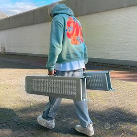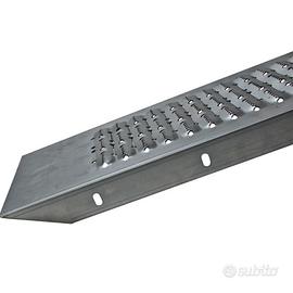 Queste rampe di carico pieghevoli e portatili sono realizzate in acciaio zincato con superficie antiscivolo e sono dotate di comode maniglie per il trasporto.