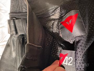 Abbigliamento da moto in pelle dainese completo di coperture pioggia e stivaletti. Taglie come da foto. Si accettano offerte serie da appassionati. Visione e acquisto solo di persona