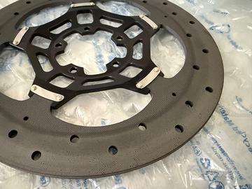 Coppia dischi freno carbo-ceramici marchio SICOM da 330 mm compatibili con la maggior parte dei modelli Ducati che montano dischi da 330 (Panigale 1199, 1299, V4, V4S, V4R, V4SP, V4SP2, Streetfighter V4, V4S, V4SP, V4SP2). Praticamente nuovi, utilizzati SOLO in strada (mai pista) per circa 1000 km. Completi di pastiglie anch'esse con lo stesso chilometraggio e compatibili con pinze Stylema e GP4-MS (da controllare la compatibilità con eventuali altri modelli di pinze). Prodotto rarissimo e introvabile che, considerando la vita stimata approssimabile a quella della moto, è sostanzialmente nuovo. Sono a disposizione per inviare ulteriori foto/video.