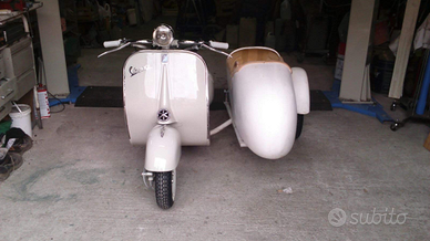 Replica sidecar vespa in vetroresina con telaio. Il kit comprende vasca (di nuova stampa rifinita), parafango, paraurti, copromolla e telaio. Per ulteriori informazioni 3384678085, Antonio